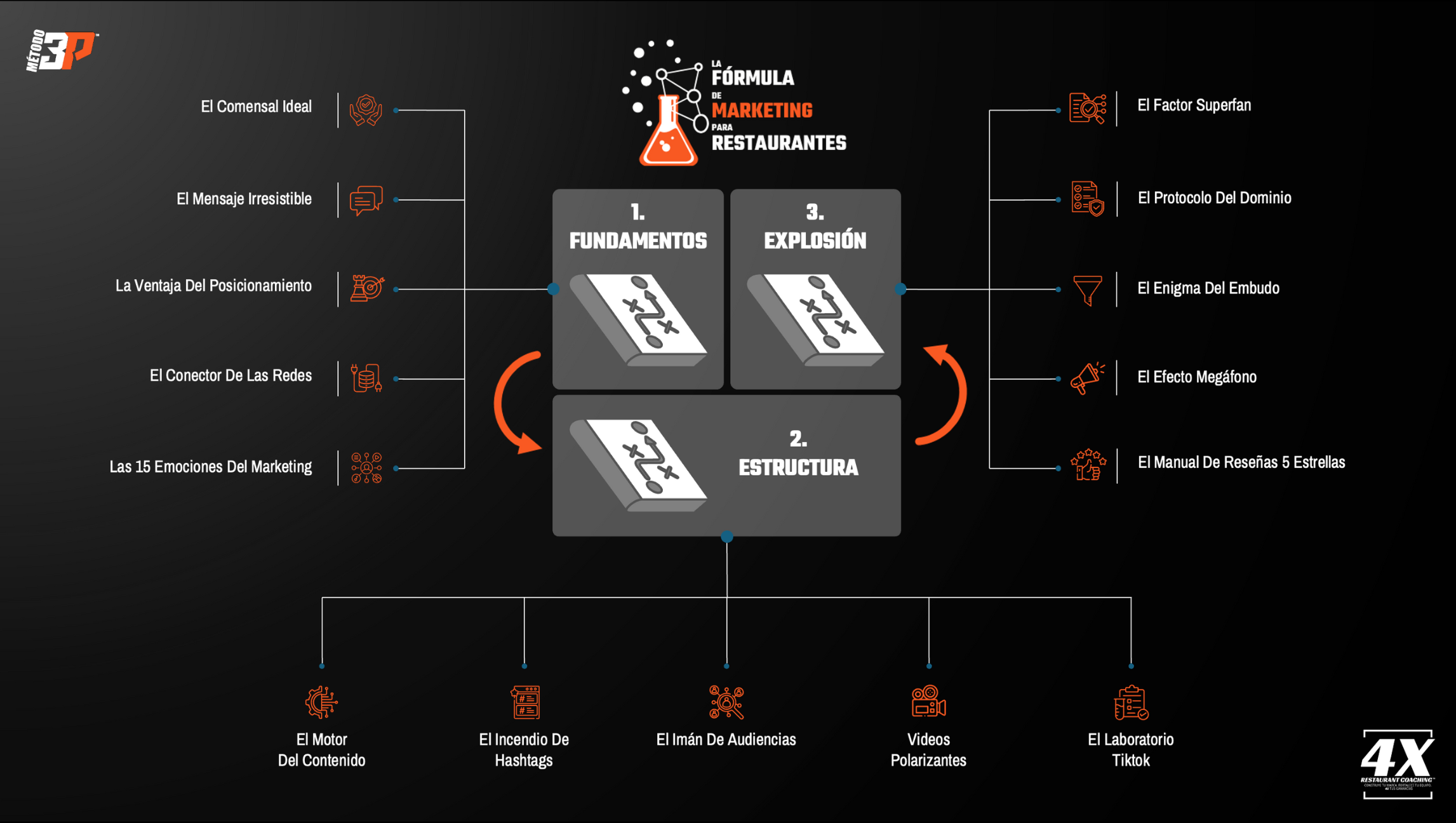 Esta es la columna vertebral de marketing dentro del 4X Restaurant Playbook™.